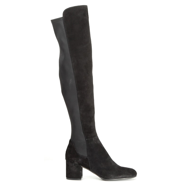 Sambro från Novita är en hög svart mockastövel med klädd klack och skinnfoder. Denna overkneestövel har en funktionell dragkedja på insidan och bakstycke i elastik för perfekt passform. Den mockaklädda klacken är ca 6 cm hög, och yttersulan är av gummi. Novita är tidlösa, unika och omsorgsfullt tillverkade av finaste materialen från utvalda garverier.