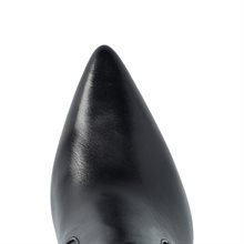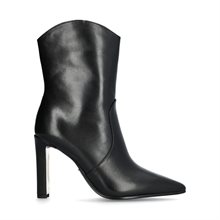 Svarta stövletter från Tamaris, designade i högt skaft och stilettklackar. Ovandel i skinn och praktisk dragkedja på insidan med gulddetalj. Pointed toe design och stilettklackar som mäter 10 cm. Innefoder i textil.