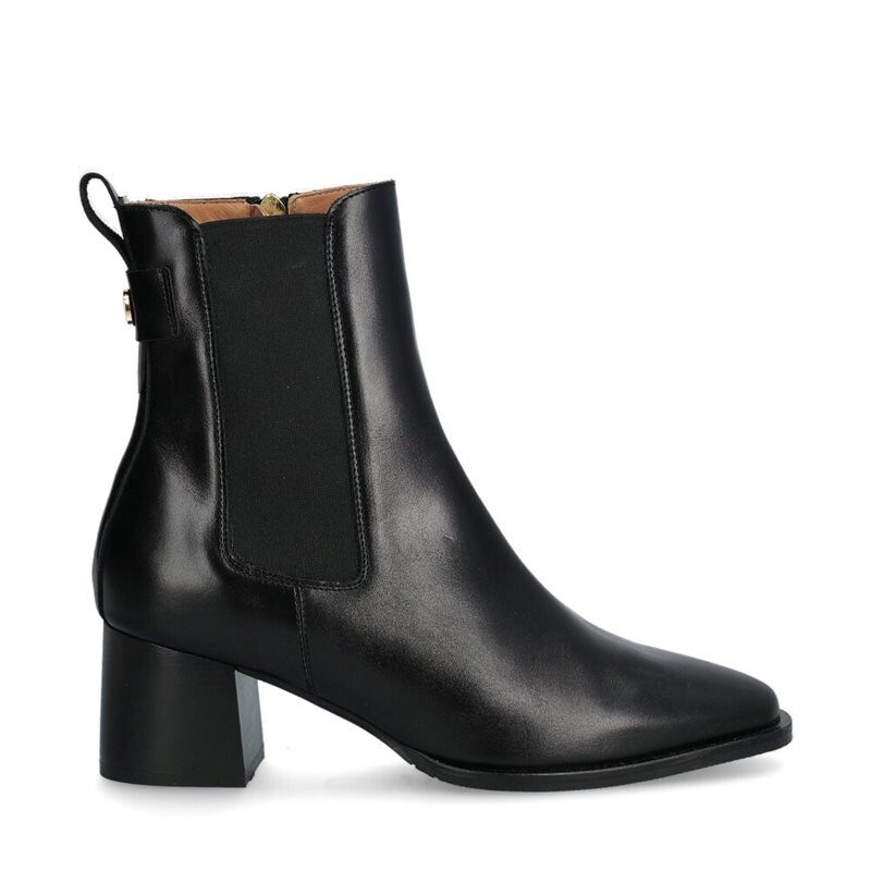Anzio, stövletter från Novita i fint, svart skinn med elastik på utsidan och dragkedja på insidan. Dragloop i skinn baktill med guldfärgade Novita-detaljer. Bootsen är fodrade med kromfritt lammskinn och har innersulor med 2 mm foam som gör dem bekväma att gå i. Klackhöjd på ca 5.5 cm. Tunityttersula med slitsula i gummi. Något liten i storleken. Producerad i Portugal