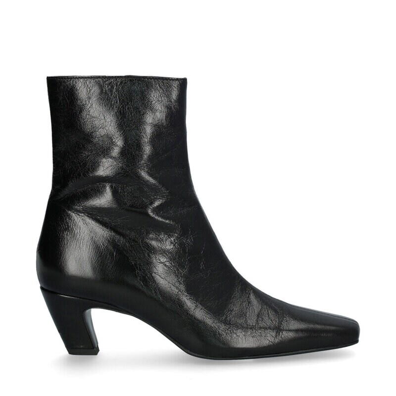 Boccea, stövletter från Novita med en moderiktig, lång siluett med mjukt avkapad tå. Ovandel i svart, mjukt nappaskinn med dragkedja på insidan av skaftet. Foder i skinn. Inåtställd klack ca 5 cm hög, skafthöjd ca 15 cm.