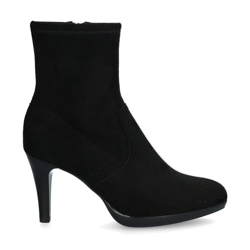Daisy, stövletter från Dasia i svart syntetmocka med snyggt stillrent halvhögt skaft. Foder i textil, dragkedja på insidan av skaftet gör det enkelt att ta på och av skorna. Den blanka klacken ger stövletterna ett dressat uttryck. Klack på ca 8 cm med 1 cm klack platå framtill.