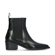 Kelsey stövletter från Vagabond med en western-inspirerad silhuett. Modellen är tillverkad i svart skinn med ett ankelhögt skaft och har en avsmalnande tåform. Dessa stilrena boots har ett textilfoder på insidan och en innersula i skinn som ger extra komfort. Klacken mäter 4 cm.