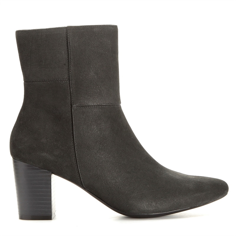 Rockport RM Trixie Bootie är en svart stövlett med gummisula. Skon har en svart klack och spetsig tå och har en ovandel i skinn. Det finns även en dragkedja på sidan av skon för att enkelt få på och av den.