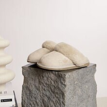 Maya, mjuk slip-in toffla från Canada Snow. Beige mockaovandel och foder i äkta fårskinnspäls. Sula i lättviktsmaterial. Fina logodetaljer. Canada Snows produkter är av högsta kvalitet och designade med stor noggrannhet.