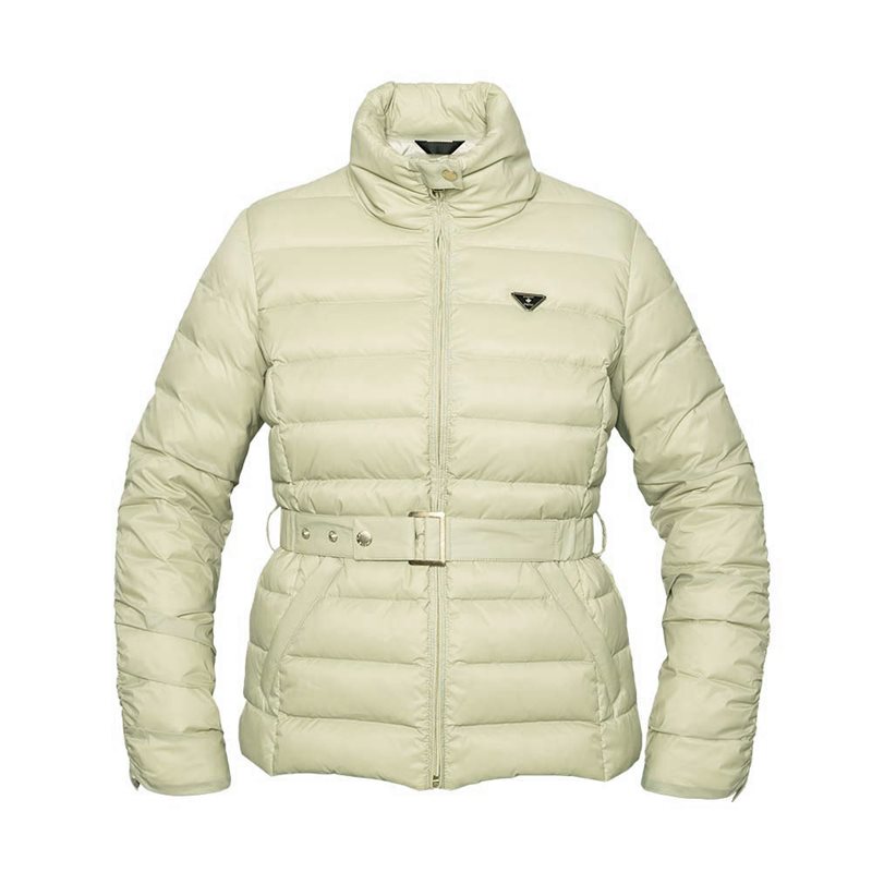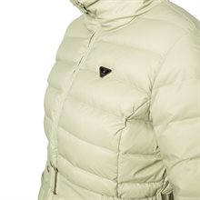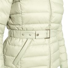 Meg, ljusgrön dunjacka från Canada Snow med avtagbart skärp i midjan. Jackan är lätt figurformad och har logodetaljer i matt, ljus guldfärg och en rynkad detalj på ärmen. Yttertyg i 100% nylon, foder 100% polyester, fyllning 90% dun 10% fjäder.