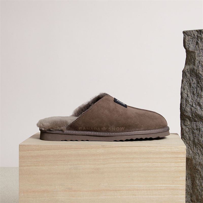 Edmonton, innetofflor i slip-in modell från Canada Snow. gråbrun mocka i ovandelen med fårskinnsfoder, sula i lättviktsmaterial. Canada Snows produkter är av högsta kvalitet och designade med stor noggrannhet.