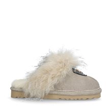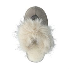 Edmonton, innetofflor för barn från Canada Snow. Fårskinnstoffla med ovandel i mjuk, grå mocka samt melerad fuskpälskrage. Dekorativ logotyp i front. Innerfoder i äkta fårskinn, yttersula i lättvikts EVA-material med liten kil. Canada Snows produkter är av högsta kvalitet och håller små fötter varma under den kallare säsongen.