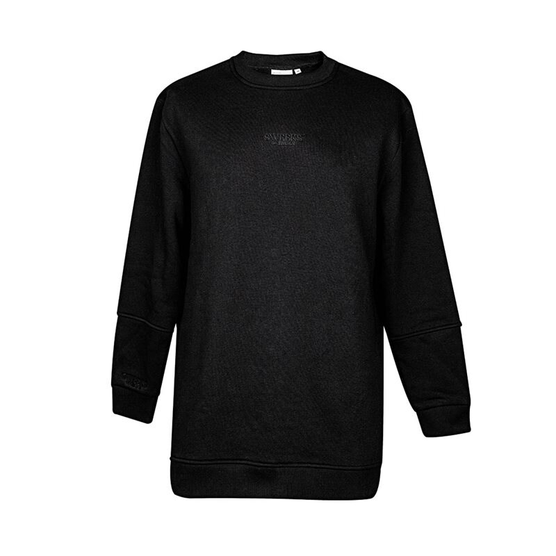 Ellen, en längre, lite oversized sweatshirt från Sweeks. Svart bomullsmix med borstad insida. Härlig tröja att använda vid lite kyligare vår- och sommarkvällar eller fram till hösten, när det är dags att hänga i soffan. Tröja med muddar i ärmslut och nerderkant av tröjan, slitsar på sidorna. Broderade Sweeks-loggor fram, på sidan och ärmen. 65% Bomull och 35% Polyester. Tvättråd: 30 grader.