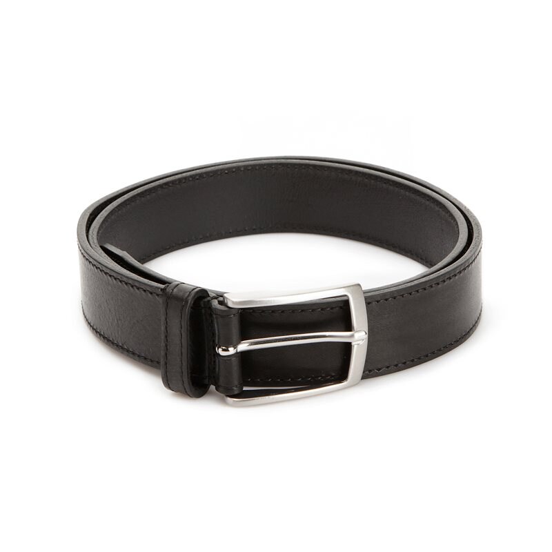 Bälte i fint svart läder med silverfärgat spänne, tillverkat i Italien. Designad för att matcha perfekt till dina skor. Finns i storlek 85cm, 95cm, 105 cm.