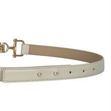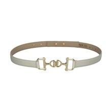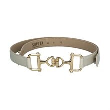 MInoa, midjeskärp från Novita i offwhite skinn med lyxigt, guldfärgat spänne. Reglerbar knäppning baktill. Snyggt bälte till byxorna eller utanpå kavajen. XS/S = 75-85cm och M/L= 85-95 cm.