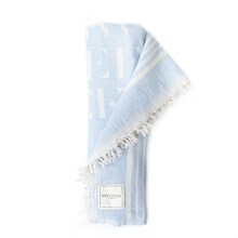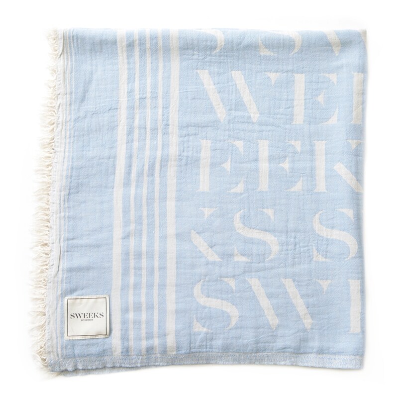 Sweeks Hamam är en ljusblå, tunt vävd hamaminspirerad handduk med vävd logoprint och tvinnade fransar på kortsidorna. Handduken är tillverkad i 100% bomull. Hamamhandduken har många användningsområden och kan användas efter badet, som en strandfilt eller till picknicken. Handduken kommer i en bomullsvävd totebag så att du kan förvara din handduk på väg till stranden och picknicken på bästa vis. Längd: 174 cm, Bredd: 94 cm.
