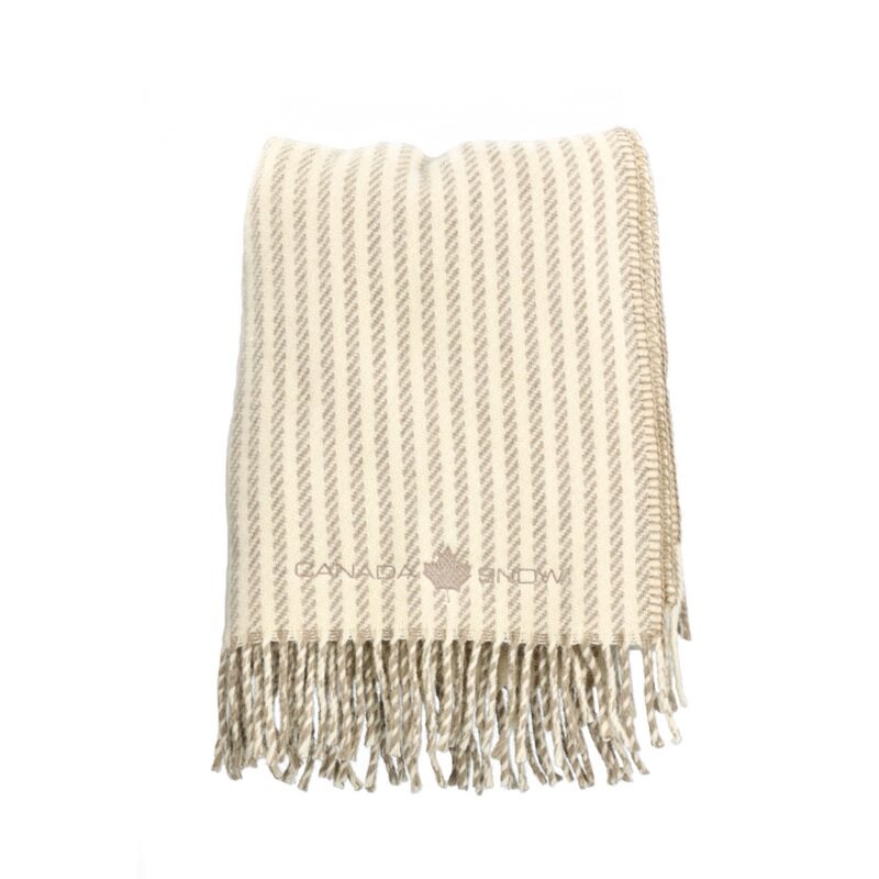 Risca från Canada Snow. En härlig vit pläd med dekorativa detaljer och logotyp. 100% ull.