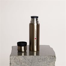 Trapper, metalltermos från Canada Snow i samarbete med "Vildmark"- termosar. Guldfärgad metall med logo. Håller värmen på utflykten och smidig storlek att ta med sig i väskan. Volym: 0,5 liter, Vikt: 280gr. Håller värmen i 8 timmar (75º)