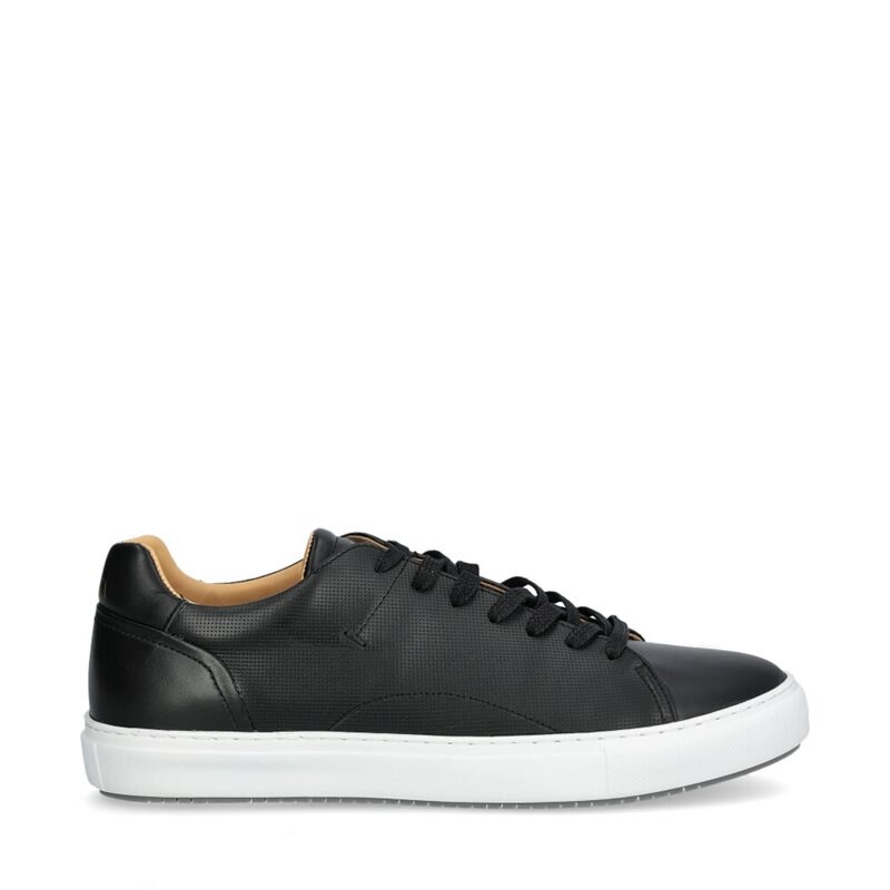Adrian, sneakers från Novita Man i svart skinn med små perforeringar på sidorna. Fodrade med skinn och har skoband i matchande färg. Yttersulor i flexibelt och slitstarkt lättviktsmaterial.Snygga skor som passar fint till både kostym och jeans.