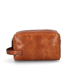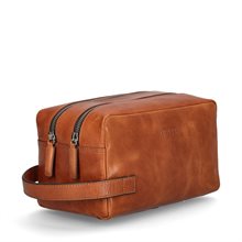 Cervo, neccessär från Novita Man i cognacsfärgat, italienskt vachettaläder. Klassisk liten väska som stängs med metalldragkedja. Foder i textil samt innerfack. Handtag i läder på sidan. B:24 cm, H: 14 cm, D: 14 cm.