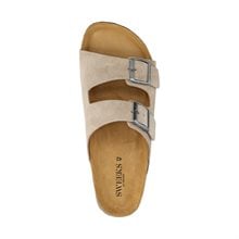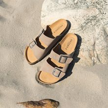 Eric från Sweeks - klassiska slip-in sandaler med formad fotbädd. Ovandelen är tillverkad i mjuk beige mocka med två justerbara remmar över foten. De silverfärgade spännena ger en stilren touch. Designad med en formad mellansula i kork som är klädd i skinn för ökad komfort. Tunn och lätt EVA-sula som ger stabilt grepp och ett flexibelt steg. Eric sandaler från sweeks passar till alla outfits i sommar och ger även ett avslappnat intryck på sommarfesten.