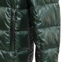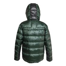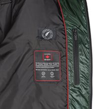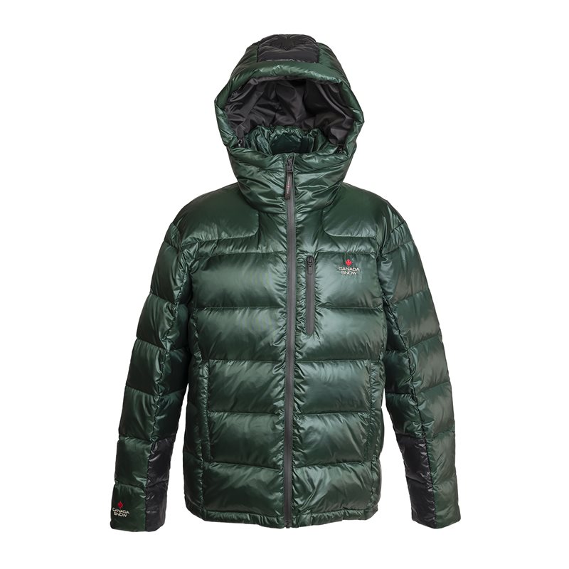 Caden, dunjacka från Canada Snow. Tillverkad i grön och glansig nylon med logodetaljer i rött och svart som skapar ett sportigt intryck. Praktiska dragkedjor som försluts med dragkedja på bröst, sidorna och insidan. Muddarna vid ärmsluten håller dig extra varm under kallare dagar. Caden är en mångsidig jacka som passar lika bra till stan som i skidbacken. Materialmix: Yttertyg 100% Nylon, Foder 100% polyester, Innerfoder 80% dun och 20% fjäder. Vattenavvisande egenskaper.