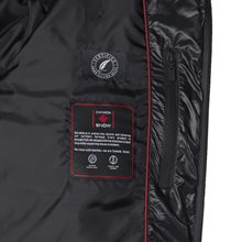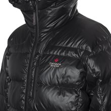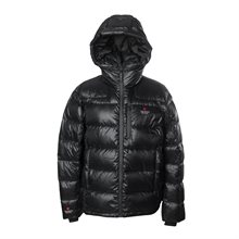 Caden dunjacka i nylon med logotyper som ger ett sportigt intryck. Tillverkad i svart vattenavvisande nylontyg och logotyp på bröstet. Utrustad praktiska fickor på sidorna och bröst som försluts med dragkedja. Muddar i ärmslut för extra värme. Caden funkar lika bra till vardags som i skidbacken under den kalla säsongen. Innerfoder: 80% Dun, 20% Fjäder.