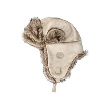 Eden, mössa i pilotmodell från Canada Snow. Vinterns härligaste mössa som garanterat hålla huvudet varmt. Praktiska öronlappar som värmer skönt, men som även går att fästa över huvudet.. Beige, mjuk textil med foder av syntetpäls