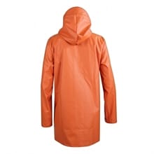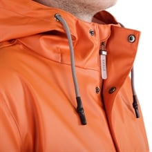 Regnjacka Västerport från Stenk i en rakt skuren unisexmodell. Matt, orange jacka med dubbelsvetsade sömmar för vattentäthet och med lufthål under ärmarna. Vattenpelare 10.000 mm. Två fickor fram, huva med dragsko, tryckknappar vid ärm för tillslutning. Tvåvägsblixtlås fram med överliggande knappslå. Grå Stenklogo vid ficka, ärm och på baksidan av jackan. Praktisk och snygg regnjacka som passar både Herr & Dam. Storlekarna är något oversized till Dam. Material i vattenbaserad PU och fri från DMF