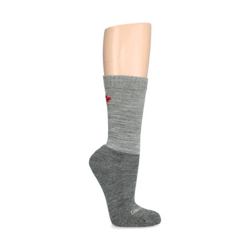 Lofsdalen från varumärket Canada Snow. Varm strumpa i ullmix med dekorativa logotyper.