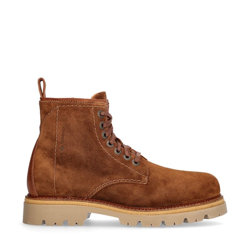 Mount Arra, kängor från Canada Snow håller dig varm och snygg i vinter. Dessa kängor i cognacsfärgad mocka har en klassisk snörning och en praktisk dragkedja på insidan. Ullmixfodret ger värme, och de uttagbara latexinnersulorna med skinnovandel ger extra komfort. Mellansulans tre lager isolering håller kylan borta, medan yttersulan i lättviktsmaterial med en dekorativ läderrand ger hållbarhet och stil.