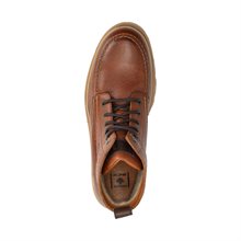 Mount Hektor, kängor från Canada Snow i cognacsfärgat skinn. Snörade kängor i en något lägre modell, och med pull tabs som gör det enkelt att dra på kängorna. Bootsen är fodrade med ett ullmix foder och har värmeisolerande innersulor. Ljus yttersula i gummi.