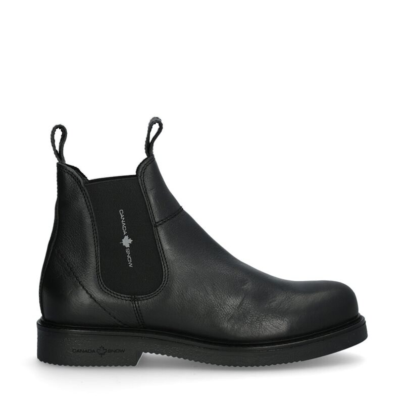 Mount Marc från Canada Snow - tidlösa chelseaboots med praktiska detaljer för maximal komfort. Ovandelen är tillverkad i svart skinn med rundad tåform, elastiska resårpaneler och dubbla draghällor som underlättar av- och påtagning. Kängorna är fodrade med varm ullmix och utrustade med uttagbara innersulor som gör det enkelt att anpassa passformen. Mellansulan består av tre isolerande lager: kork, aluminium och Thinsulate, vilket ger effektiv värmehållning även under kyliga dagar. Modellen vilar på en yttersula i slitstarkt gummi som ger bra grepp på kalla underlag. Mount Marc är det perfekta valet för dig som vill ha en klassisk svart chelseaboot med fokus på både komfort och funktion.