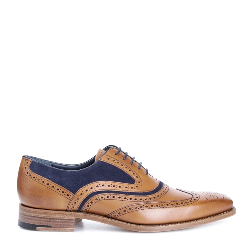 McClean från Barker, dressade lågskor i oxfordmodell. Ovandel i fint cognacsfärgat kalvskinn med broguemönster samt partier i blå mocka. Helt fodrad i skinn och med en randsydd yttersula i läder. Dessa skor är ett hantverk från engelska Barker, som tillverkat skor i England sedan 1880. En klassiker som passar alldeles utmärkt till kostym eller kavaj, men är även snygga till ett par jeans. Säljs i UK Herr-stl.
