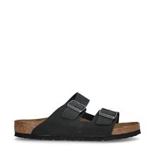 Arizona, klassiska sandeler från Birkenstock. Ovandel i mjukt oljat, svart nubuckläder. De justerbara remmarna över foten ser till att du får perfekt passform. Den anatomiskt utformade fotbädden av naturkork har även ett extra lager med latex som ser till att dina fötter får en härlig komfort och rätt stöd. Normal läst som ger fin passform åt dig med normala, eller lite bredare fötter.