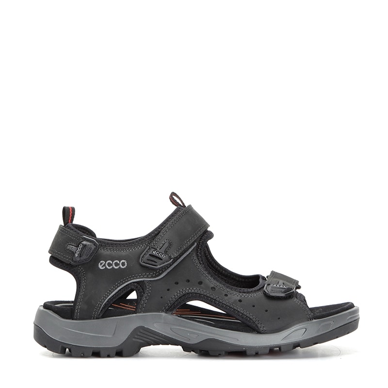 Offroad, sandaler från Ecco. Ovandel i svart nubuck med insidan fodrad med svart neopren. Skorna har tre justerbara remmar för perfekt passform och bra stöd. Mellansula i flexibelt material, format efter foten och yttersula med Receptor®-teknologi som ger komfort och bra grepp på de flesta underlag.