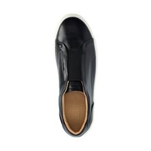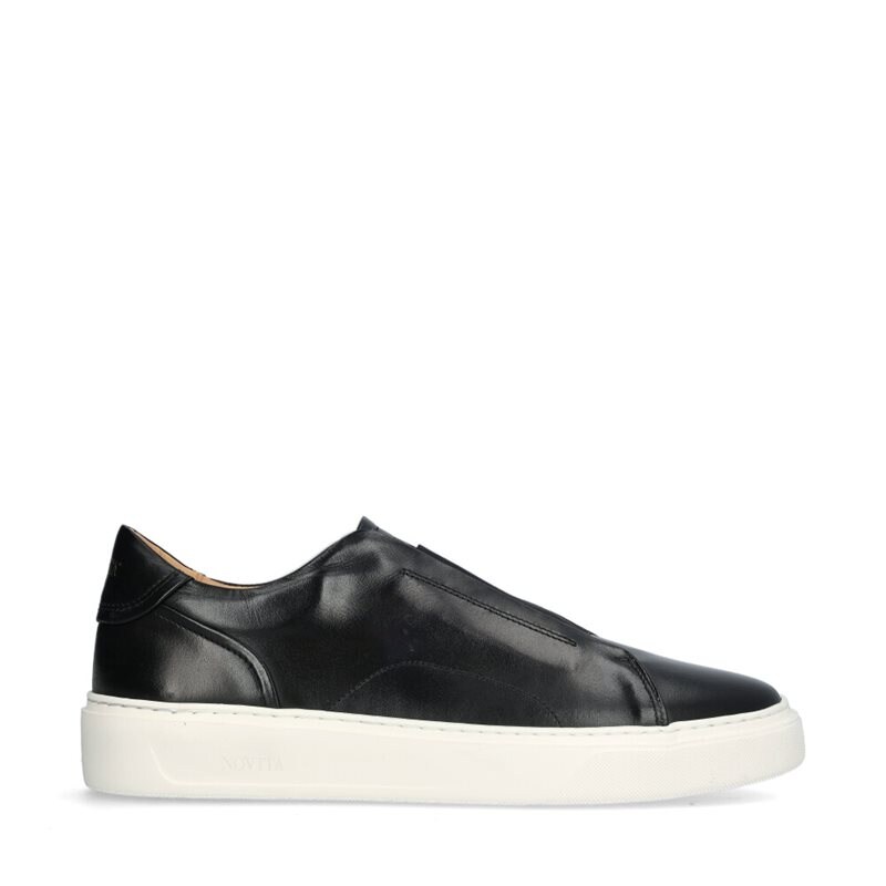 Madini, sneakers från Novita Man i svart skinn. Skorna är fodrade med mjukt kalvskinn och har uttagbara innersulor. Ett smakfullt brett elastikband över foten med en vit gummisula fulländar looken.