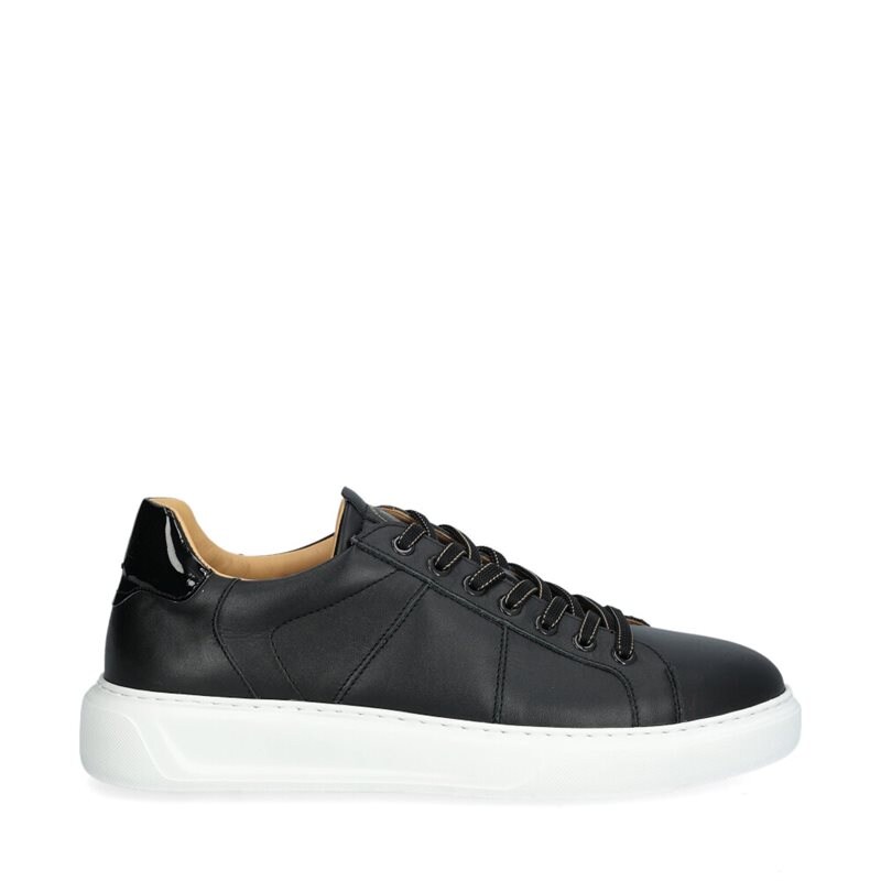 Padua, stilrena sneakers i svart skinn från Novita Man. Bakkappa i blanksvart skinn och fodrade med kalvskinnsfoder av premiumkvalitet. Snörning med svarta öljetter. Uttagbara innersulor, vit lättviktssula av EVA. Ett par svarta snören medföljer i skolådan. Stor i storleken.