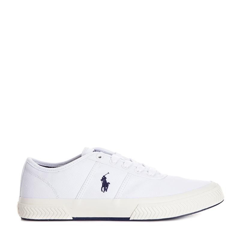 Ralph Lauren Tyrain är vit sneaker med ovandel i textil och även med foder i textil. Skon har en vit gummisula och vita skosnören och på sidan finns en liten logga.