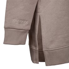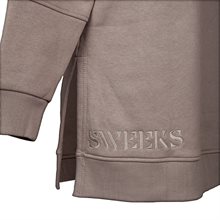 Ellen, en längre, lite oversized sweatshirt från Sweeks. Beigegrå bomullsmix med borstad insida. Härlig tröja att använda vid lite kyligare vår- och sommarkvällar eller fram till hösten, när det är dags att hänga i soffan. Tröja med muddar i ärmslut och nerderkant av tröjan, slitsar på sidorna. Broderade Sweeks-loggor fram, på sidan och ärmen. 65% Bomull och 35% Polyester. Tvättråd: 30 grader.