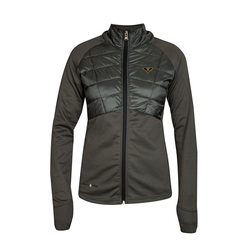 Miriam, jacka från Canada Snow i tunnare grön fleece och powerstretch. Sportig jacka med vadderad partier på fram- och baksida för extra värme. Perfekt jacka som mellanlager eller vid svala höst-och vårdagar. Jackan är något liten i storleken, välj en större om du är mellan två storlekar.