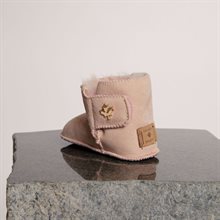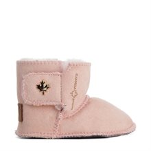 Mount Pelly, mjuka och sköna fårskinnstofflor från Canada Snow, för de minsta barnen. Kardborreknäppning på utsidan av bootsen gör de lätta att ta på, även på de minsta fötterna. Foder i varmt fårskinn, utsida i ljusrosa mocka.