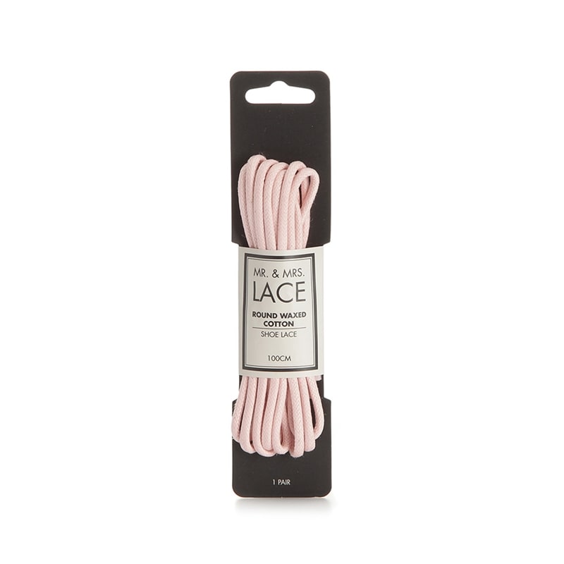 Ljusrosa runda vaxade skosnören i bomull. 1 par. Längd 100 cm.