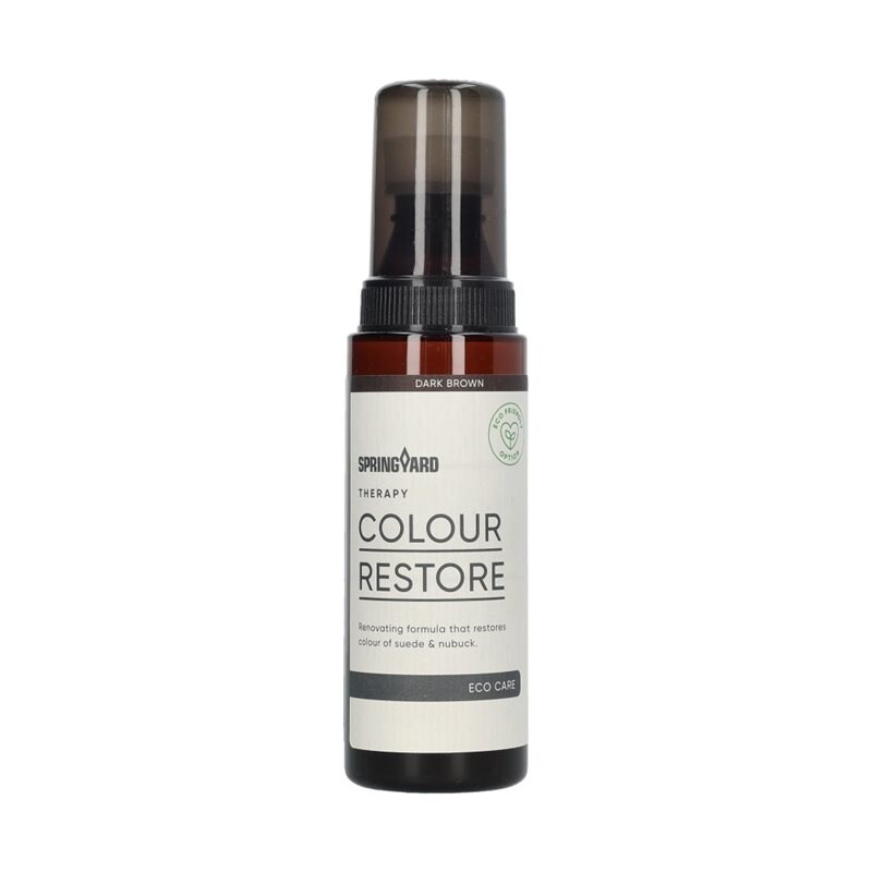 Colour Restore är en vattenbaserad, skonsam skokräm för bruna skor som fräschar upp mocka och nubuck, återställer färg och lyster och motverkar uttorkning. Den ger en lätt vattenavstötande effekt och lämnar efter sig en fräsch, naturlig doft med inslag av timjan. Innehållet är noggrant utvalt med hänsyn till både miljö och hälsa. Använd regelbundet för att förlänga skornas livslängd. Finns i flera färger och är PFAS-fri. Volym: 120 ml. Bruksanvisning: Skaka flaskan, tryck applikatorn lätt mot ytan för att frigöra vätska, applicera jämnt och låt lufttorka. Avsluta med mocka- eller nubuckborste. Testa alltid på dold yta först.