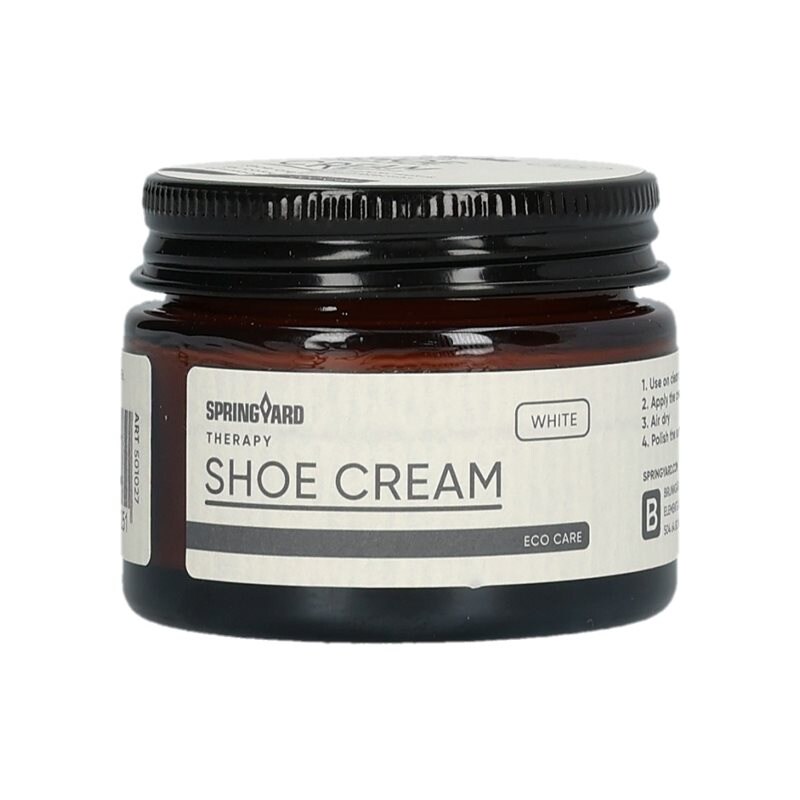 En traditionell skokräm för vita skor som återställer färgen, ger näring och skyddar lädret mot smuts och väta. Innehåller naturliga vaxer som förhindrar uttorkning och lämnar efter sig en fräsch, naturlig doft med inslag av timjan. Finns i flera färger och är helt fri från PFAS. Volym: 50 ml. Bruksanvisning: Applicera på ren och torr yta, låt torka och polera med trasa eller borste. Testa alltid på dold yta först.