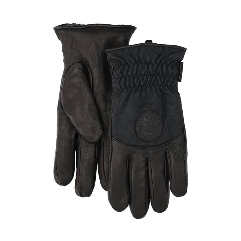 Vasa handskar från Canada Snow. Tillverkade i mix av svart skinn och textil som dekoreras med en rund retro-inspirerad logotyp i skinn. Handskarna är fodrade med mjuk textil och värmeisolerande thinsulate. Perfekta under den kallare årstiden.
